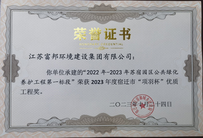 好消息!蘇宿園區(qū)公共綠化養(yǎng)護(hù)工程一、二標(biāo)段同時(shí)榮獲2023年“項(xiàng)羽杯”優(yōu)質(zhì)工程獎(jiǎng)