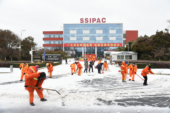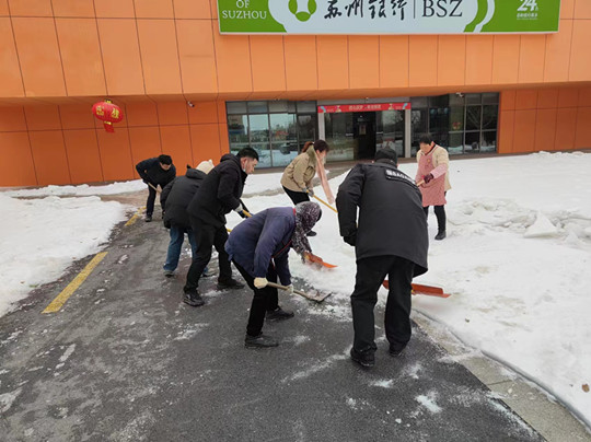 一場大雪,把蘇宿園區(qū)裝點得銀裝素裹,卻給群眾出行帶來了很大不便。為保證居民安全出行,建發(fā)公司全體職工參與園區(qū)及各物業(yè)項目道路掃雪除冰工作,奏響全員鏟冰除雪“進行曲”。