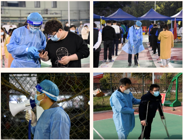 在這個(gè)集宿區(qū)內(nèi),有一群人奮戰(zhàn)在抗疫最前線。“大白”和“小藍(lán)”是他們最矚目的“通行證”、“工作證”,他們身份多樣,上演著超級(jí)“變、變、變”,他們既是細(xì)致入微的醫(yī)生助手,也是發(fā)放物資的大力水手,還是現(xiàn)場保障的行家里手。