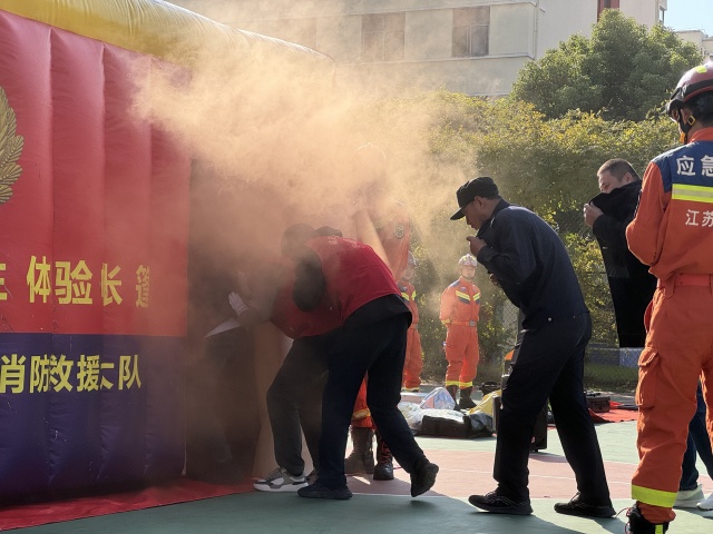 活動(dòng)中,園區(qū)消防大隊(duì)工作人員和公司消防志愿者向現(xiàn)場(chǎng)員工發(fā)放消防安全常識(shí)二十條宣傳單,細(xì)致介紹了各類滅火救援器材的使用方法和初期火災(zāi)處置、火場(chǎng)逃生自救等消防安全知識(shí)。活動(dòng)現(xiàn)場(chǎng)設(shè)置了火場(chǎng)逃生和火災(zāi)處置等模擬場(chǎng)景,參加活動(dòng)的員工積極體驗(yàn),主動(dòng)提升自身應(yīng)對(duì)火災(zāi)的能力。