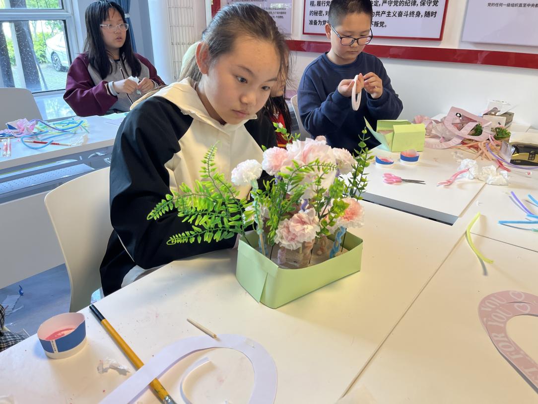 在親子感恩環(huán)節(jié)中,孩子們親手制作的花籃獻(xiàn)給母親傳遞愛意,用擁抱表達(dá)心聲,溫馨的氛圍感染著每一位參與者。