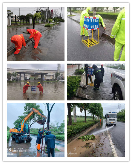 市政巡查搶險(xiǎn)組按照區(qū)域劃分到達(dá)現(xiàn)場(chǎng),第一時(shí)間開(kāi)啟雨水井蓋,安放窨井排水警示罩并安排專(zhuān)人值守確保安全;強(qiáng)排組迅速進(jìn)駐閘站,待接到園區(qū)防汛指揮部指令后開(kāi)啟水泵強(qiáng)排,電力保障組跟進(jìn)做好電力保障工作;園林巡查組組織人員機(jī)械持續(xù)巡查,及時(shí)處置倒伏樹(shù)木。