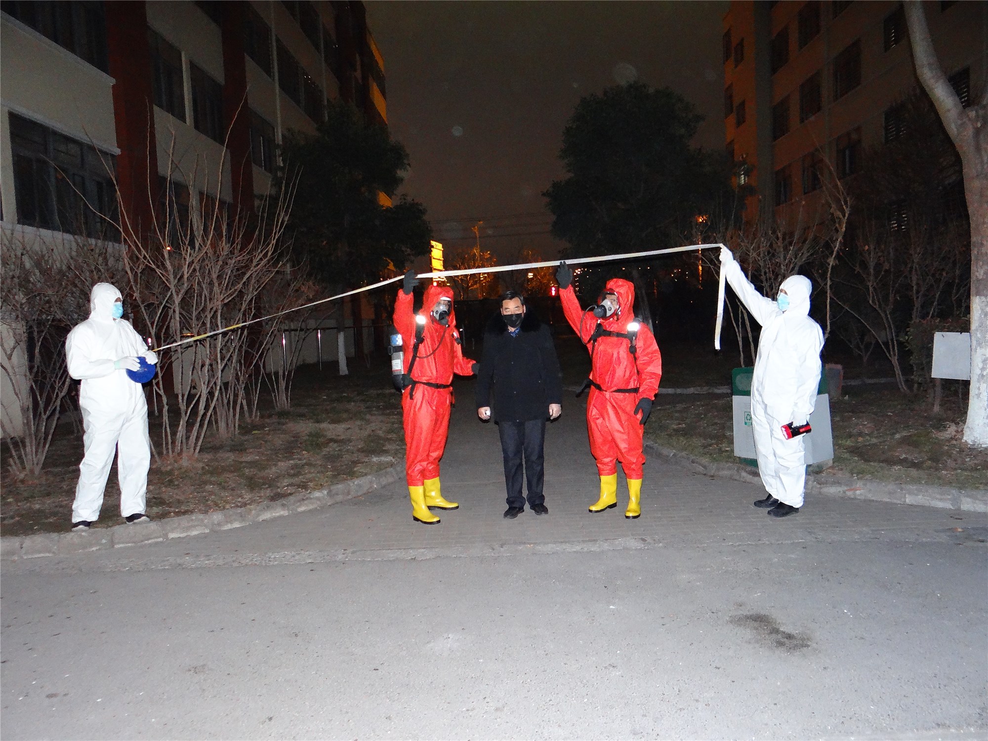 本次演練主要模擬一位5天前從徐州回到園區(qū)公舍的35歲男性患者,因發(fā)熱、咳嗽、咽痛、頭痛現(xiàn)象開始進行演練,應急小組迅速拉起警戒、轉移、指定區(qū)域隔離、消毒,并匯報相關部門,按照實戰(zhàn)應急響應標準,統(tǒng)一領導指揮,工作人員加強個人防護,演練過程緊張有序,細致謹慎,整場新型冠狀病毒肺炎應急演練活動取得圓滿成功。
