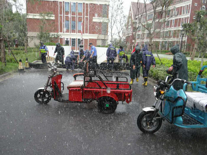 演練情景假設(shè)為下午3時(shí)突降暴雨,由于降雨量過(guò)大,現(xiàn)場(chǎng)地下停車(chē)場(chǎng)積水,存在車(chē)輛被淹的危險(xiǎn)。在項(xiàng)目防汛應(yīng)急小組指揮下,立即啟動(dòng)了防汛應(yīng)急預(yù)案, 24小時(shí)待命的各應(yīng)急小組進(jìn)入搶險(xiǎn)狀態(tài),迅速分頭行動(dòng),疏散人員、設(shè)置擋水圍堰、抽排停車(chē)場(chǎng)積水,圓滿完成防汛應(yīng)急搶險(xiǎn)。