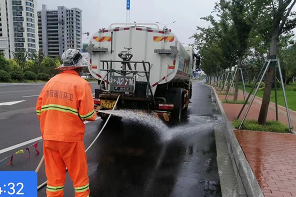 為積極落實(shí)大氣污染防治工作要求,園區(qū)環(huán)衛(wèi)每天出動(dòng)8臺(tái)洗掃車、2臺(tái)高壓沖洗車,在轄區(qū)內(nèi)持續(xù)開展灑水沖洗、除塵、降溫等大氣污染防治作業(yè)。結(jié)合道路特點(diǎn),利用小型高壓沖洗車對(duì)道路側(cè)邊石、人行道等細(xì)節(jié)處進(jìn)行沖洗。