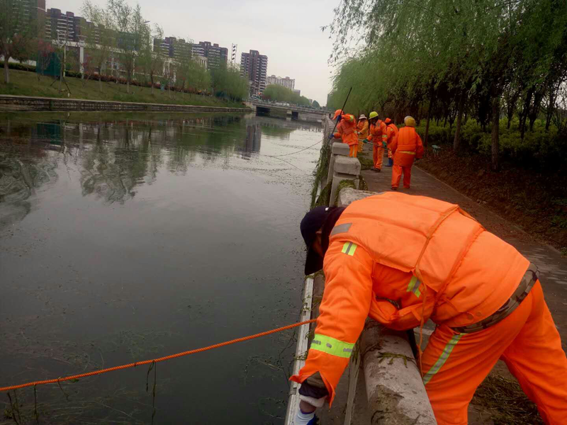 4月初,園區(qū)富民河、利民河、蔡莊大溝等河道水草開始大面積繁殖,為了營造良好的水環(huán)境,確保河道暢通,公司第一時間組織人員集中開展河道水草清理工作。