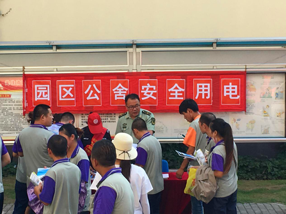 為提升入住員工安全用電素質(zhì),強(qiáng)化安全生產(chǎn)意識(shí),認(rèn)真落實(shí)園區(qū)安委會(huì)關(guān)于開(kāi)展安全生產(chǎn)大檢查活動(dòng)。8月17日公司協(xié)同園區(qū)消防大隊(duì)組織開(kāi)展安全宣傳日活動(dòng),通過(guò)現(xiàn)場(chǎng)咨詢、拉宣傳標(biāo)語(yǔ)、向行人發(fā)放安全用電的宣傳冊(cè)、耐心向群眾宣傳講解電力安全知識(shí)等方式進(jìn)行安全生產(chǎn)宣傳咨詢活動(dòng)。