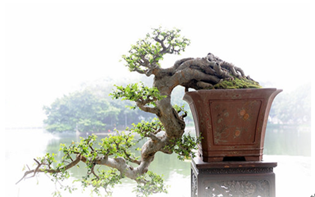 因地處五嶺之南面稱為嶺南派。嶺南派盆景形成過程中,受嶺南畫派的影響,創(chuàng)造了以“截干蓄枝”為主的獨特的折枝法構(gòu)圖,形成“挺茂自然,飄逸豪放”特色。創(chuàng)作題材,或師法自然,或取于畫本,分別創(chuàng)作了秀茂雄奇大樹型、扶疏挺拔高聳型、野趣橫生天然型和矮干密葉疊翠型等具有明顯地方特色的樹木盆景;又利用華南地區(qū)所產(chǎn)的天然觀賞石材,依據(jù)“咫尺千里”、“小中見大”的畫理,創(chuàng)作出再現(xiàn)嶺南自然風(fēng)貌為特色的山水盆景。